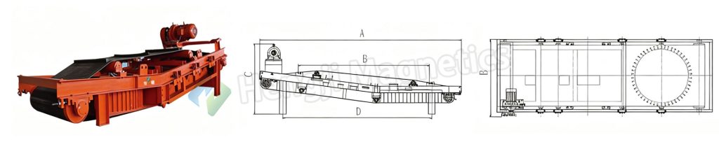Featuring a unique primary and auxiliary pole configuration, this advanced magnetic iron ore separator effectively extracts large iron plates, steel bars, and other challenging ferrous contaminants. The optimized magnetic circuit and expanded separation zone significantly reduce ore carryover, making this magnetic separator for conveyor belt systems particularly effective where conventional equipment fails.