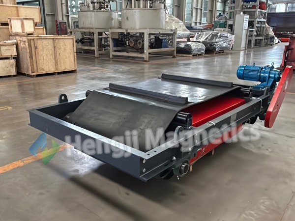 Continuous Discharge: A self-cleaning conveyor belt magnetic separator features a continuously moving belt that carries captured iron sideways and drops it into a collection bin. This happens automatically, without stopping the main conveyor.