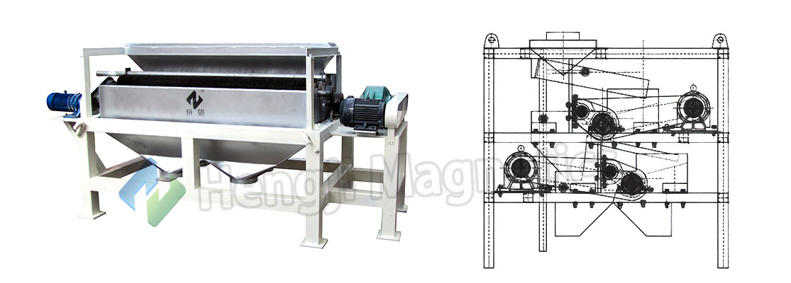 Notes: The above data is for reference only. The number of magnetic rolls can be 1 – 10 according to requirements, and the size of magnetic rolls can be freely combined according to multiple weight changes. The actual magnetic field intensity should be determined according to the material conditions and separation requirements. The processing capacity will vary with the number of magnetic rolls, the size of magnetic rolls, and the slurry concentration. The specific design shall prevail.